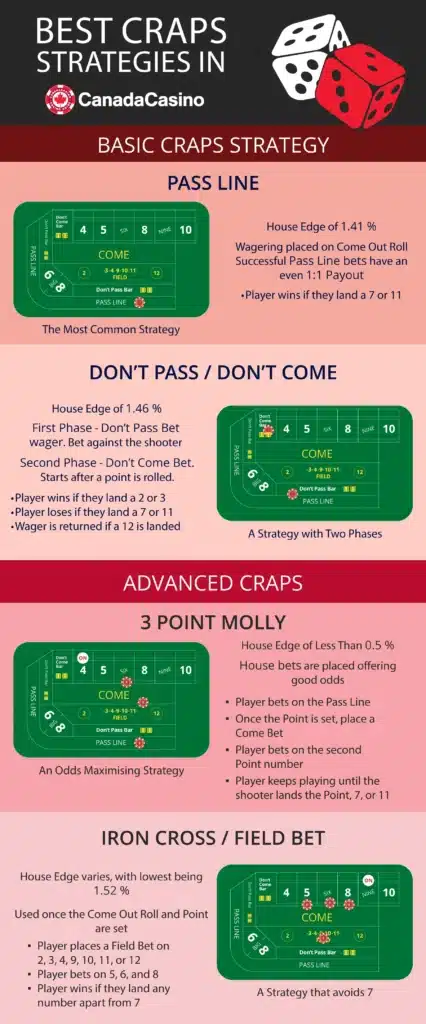 - Don’t Pass Strategy: “Dark side” betting, lower edge but less popular.