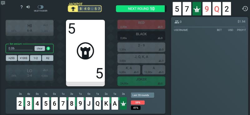 - Quick Example: Current card: 4. Bet low—odds favor it (only 3 cards beat it). Next: 2. Boom, payout.